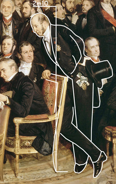 Baroche was a tall man, but when his height here is compared with the chair and with other men, he appears to stand well over two meters tall: a giant.
