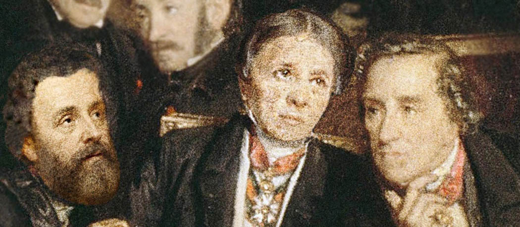 It is inconceivable that de Taverne, himself a painter, would have misidentified Ingres and others like Flandrin. A more plausible explanation is that Biard, compelled to revise the composition after Rachel’s removal, altered the placement of several figures. Because all male sitters were depicted in nearly identical evening dress, last-minute facial substitutions were feasible, provided that the insignia of the Légion d’Honneur remained accurate.