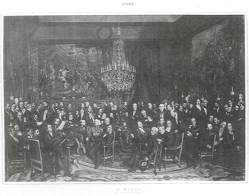 Une Soirée, toutefois, ne le suivit pas. En tant qu’objet acquis par la Maison de l’Empereur, elle demeura en France, intégrée à la Liste civile de Napoléon III. (La Liste civile a été largement étudiée, notamment par Catherine Granger, 2005.)