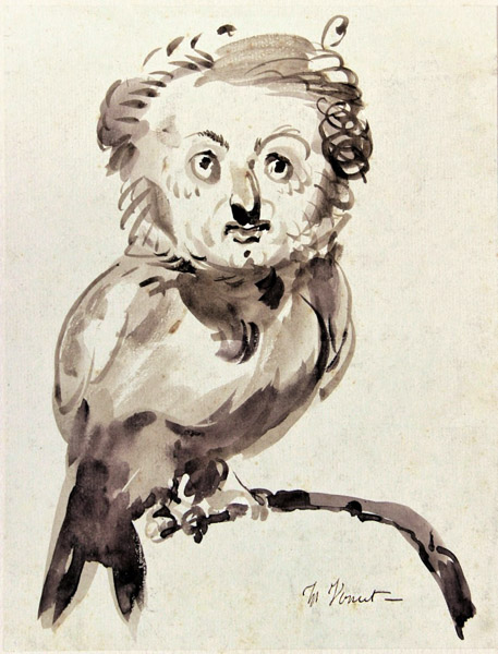 Horace Vernet31, whose studio was nearby, caricatured Isabey as an owl perched on a branch after noting that the painter’s cottage stood above ground on four large poplar beams at the edge of the lake; that caricature later entered the collection of the conservator de Chennevières20. Vernet, Isabey, and Morel-Fatio were among the founders of the Le Havre Regatta Society in 1839.