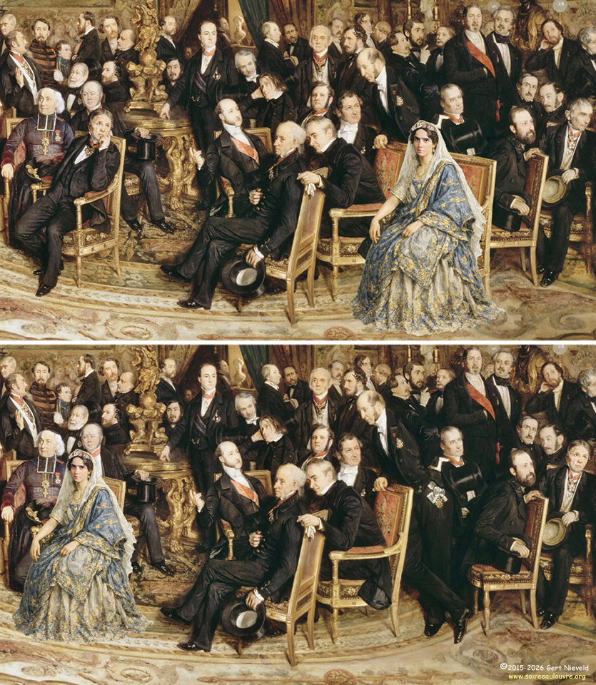 In the final version, the only artist within Fould’s17 immediate vicinity is Delacroix10, seated behind him.