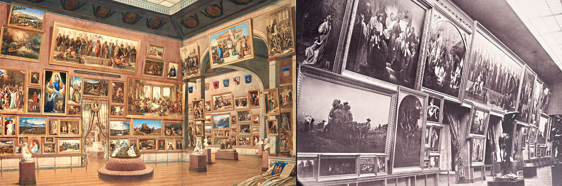 The lateral wings of the Palais des Beaux-Arts housed overflow galleries for works that could not be accommodated in the principal rooms, as well as storage areas for rejected paintings.