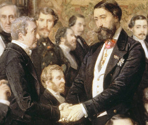 In contrast, M. Auber has such an ecstatic, inspired expression that he seems to take M. Duret’s conversation for celestial harmonies. As for M. Delacroix, he has the amiable physiognomy of a melodramatic traitor plotting a crime. MM. Ingres, de Morny, and Achille Fould are likewise disgraced by art. But the most mistreated is assuredly M. de Mercey, who presents to the assembly the most funereal face one could imagine… worthy of a catafalque’s memory.