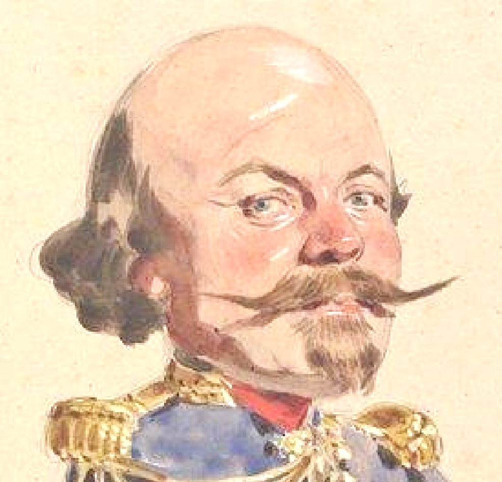 Ayant passé de nombreuses années sur les champs de bataille, la présence de François de Canrobert’s à la vendredi-soirée de de Nieuwerkerke est surprenante. Bien qu’il fût un amateur passionné de musique et de littérature, il est probable que sa venue ait été liée à sa promotion au grade de général de division en janvier 1853. Giraud réalisa sa caricature plusieurs années plus tard.